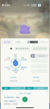 めざめるパワーの廃止によってU(個体値30)の価値は無くなりましたが、依然としてA0・S0は戦略として必要です。 この記事ではA0・S0の必要性について、A0・S0調整に苦戦するという意見をまとめていきます。 S0メタモン・A0メタモンの入手難易度を嘆く人達 剣盾ポケモンソード・シールドNintendo Switchで19年に発売予定のポケットモンスターシリーズ完全新作「ソード・シールド (剣盾)」の最新ニュースや攻略情報をお届けします! ポケモン ソード・シールド(剣盾)キャンペーンページ 個体詳細 ・ゲノセクト レベル60 ボールプレシャスボール 性別不明 個体値3v固定ランダム 性格ランダム 特性ダウンロード おやゲッチャレ(11) リボンクラシックリボン 技テクノバスター、シザークロス、メタルクロー、とどめばり ・ボルケニオン レベル60 ボール