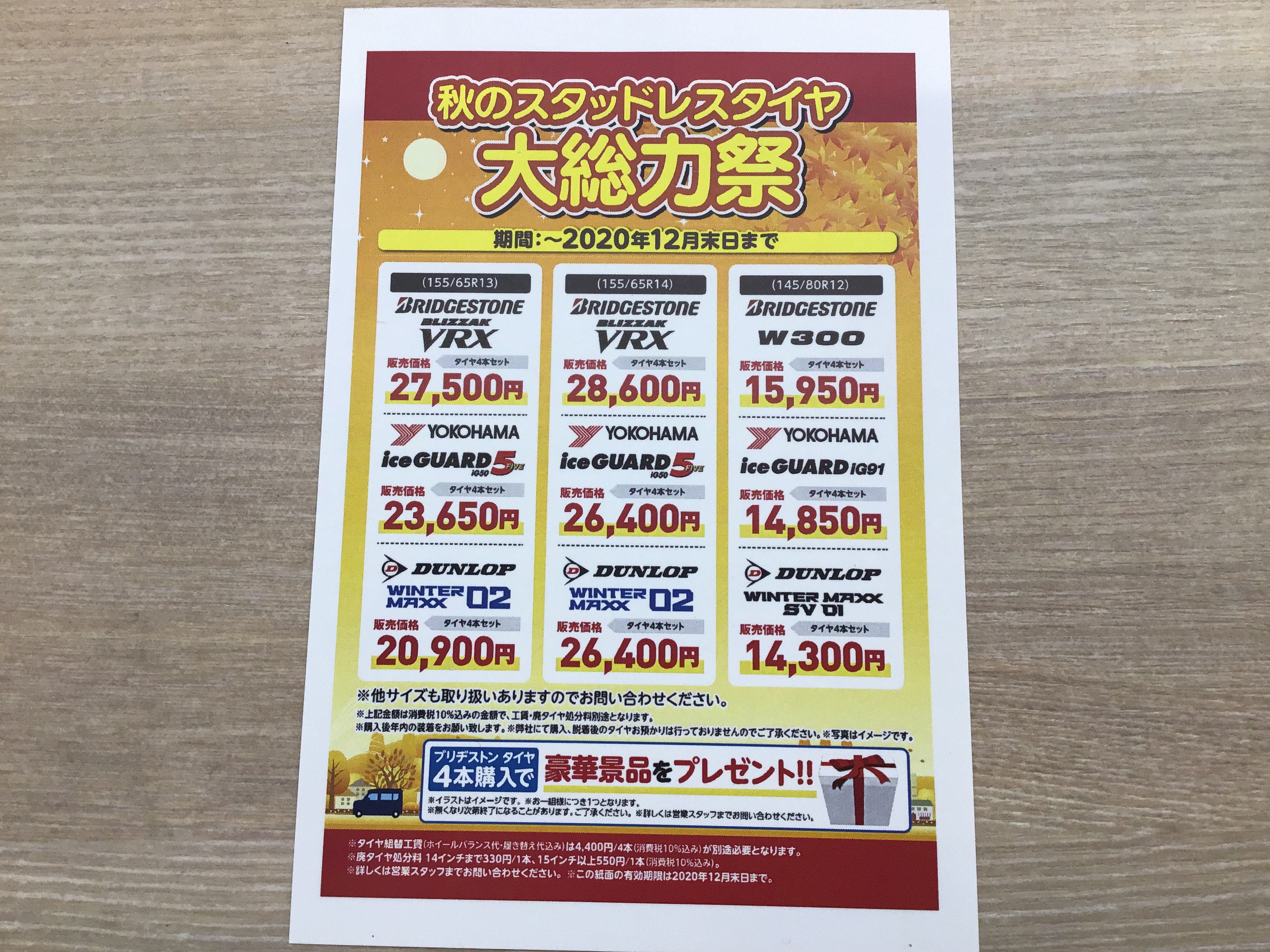 10月限定 スタッドレスタイヤキャンペーン タイヤ倶楽部 郡山